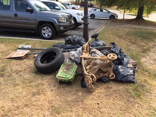 Pile of trash found by Rotarians and family in and near the river