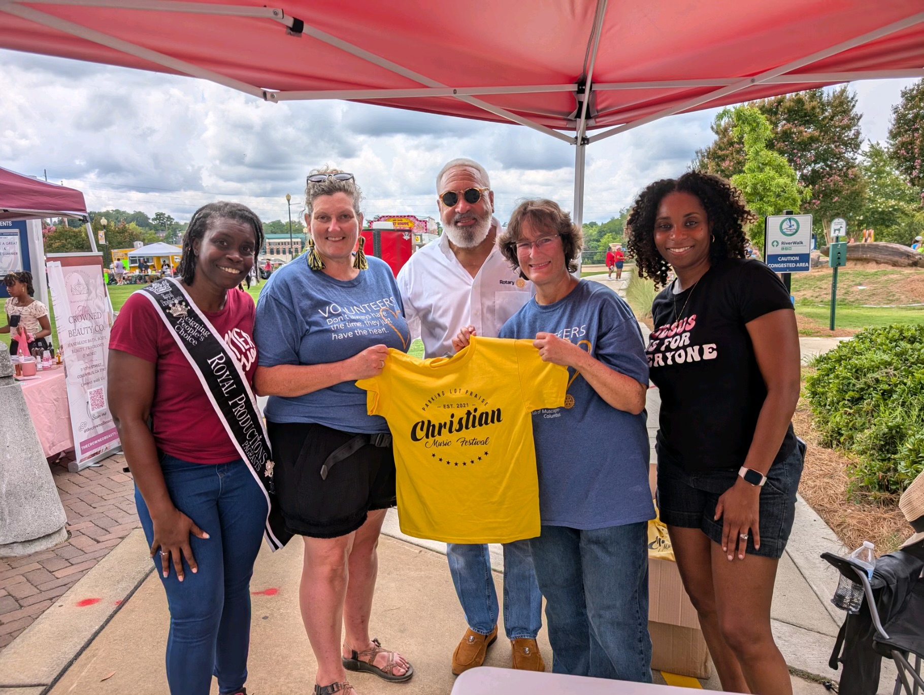 On July 27, 2024, the Muscogee- Columbus Rotary Club volunteered at the Parking Lot Praise Christian Music Festival and Parade, an independent event brought to the community by timothygabriel and Lion and Lamb Music Group. We managed vendor logistics and assisted at the merchandise table during the festival at Woodruff Riverfront Park, which featured artists like Tedashii and Jamie-Grace, along with speakers, food trucks, and community activities, following the morning's Christian parade on Broadway."