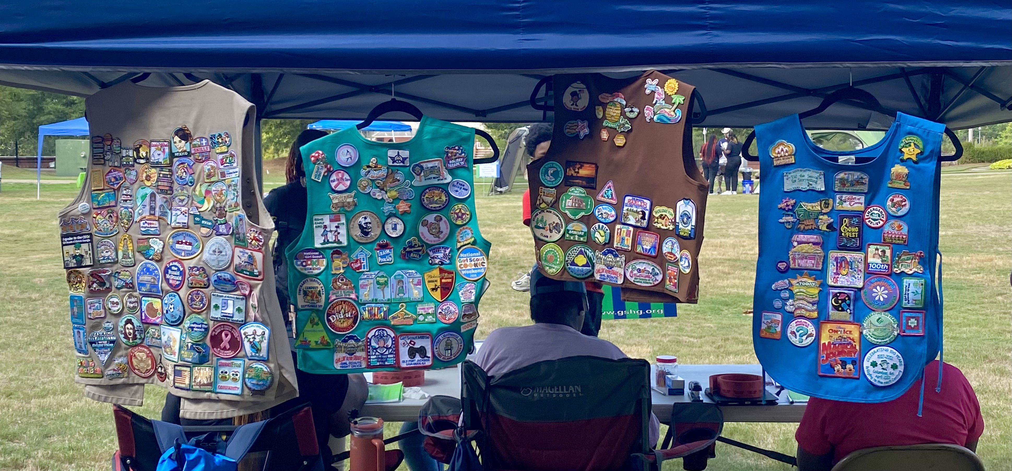 Girl Scout vest from Rotarian, Ren Jewell displaying her 13 years of Girl Scouts